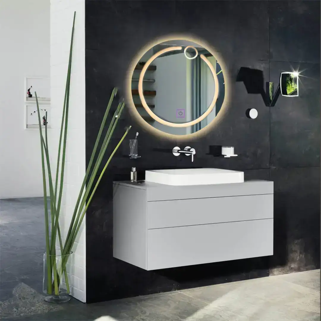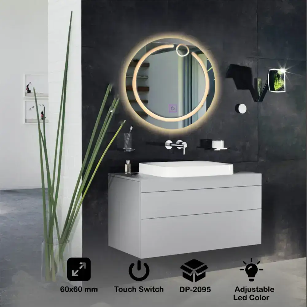 The energy-efficient LED lights provide a warm, inviting glow, ideal for setting the right mood. The mirror also features adjustable 3-color lighting—Warm White, Neutral White, and Cool White—so you can easily switch to the perfect lighting tone for your environment or task. Its classic shape ensures versatility, effortlessly fitting into a wide range of interior styles—from contemporary to traditional.